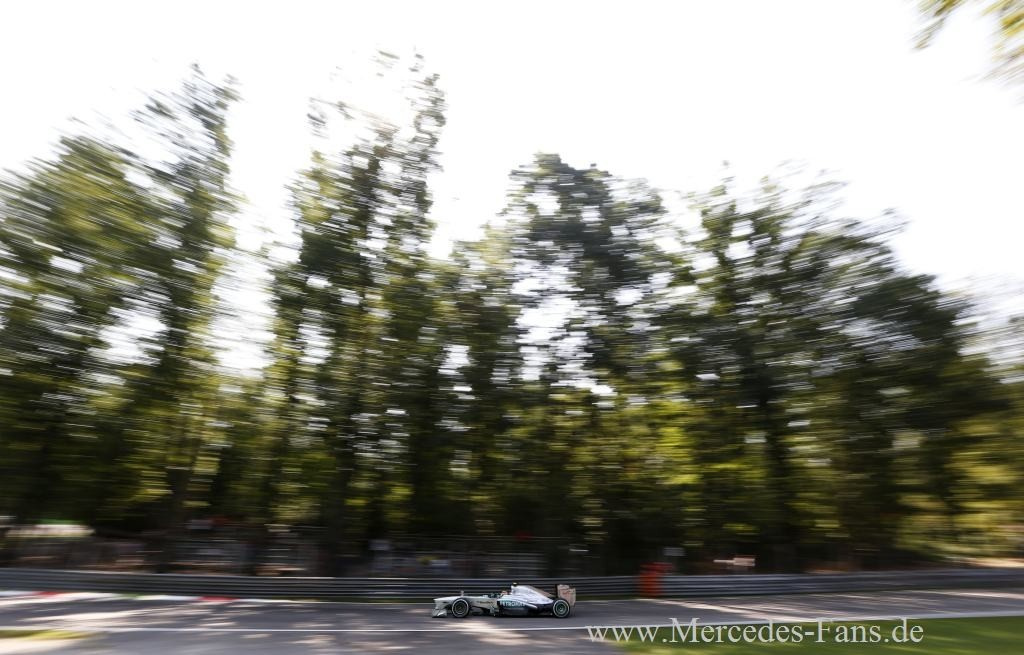 Die Mercedes-Werksfahrer Nico Rosberg und Lewis Hamilton beendeten den Großen Preis von Italien in Monza auf den Positionen sechs und neun. Hamilton hatte auf seinem ersten Satz Prime-Reifen einen schleichenden Plattfuß vorne rechts und musste in Folge dessen in Runde 13 vorzeitig an die Box kommen. Nicos Boxenstopp war mit einer Gesamtdurchfahrtszeit von 24.079 Sekunden der schnellste des Rennens. "Wir hatten heute ein sehr schnelles Auto und somit war...,