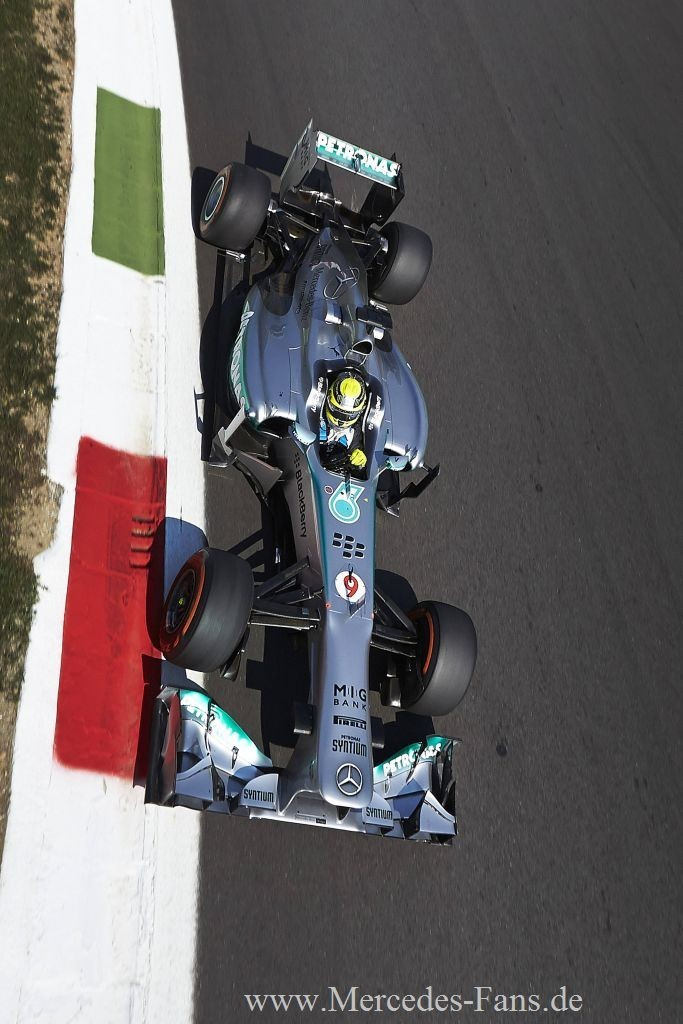 Die Mercedes-Werksfahrer Nico Rosberg und Lewis Hamilton beendeten den Großen Preis von Italien in Monza auf den Positionen sechs und neun. Hamilton hatte auf seinem ersten Satz Prime-Reifen einen schleichenden Plattfuß vorne rechts und musste in Folge dessen in Runde 13 vorzeitig an die Box kommen. Nicos Boxenstopp war mit einer Gesamtdurchfahrtszeit von 24.079 Sekunden der schnellste des Rennens. "Wir hatten heute ein sehr schnelles Auto und somit war...,