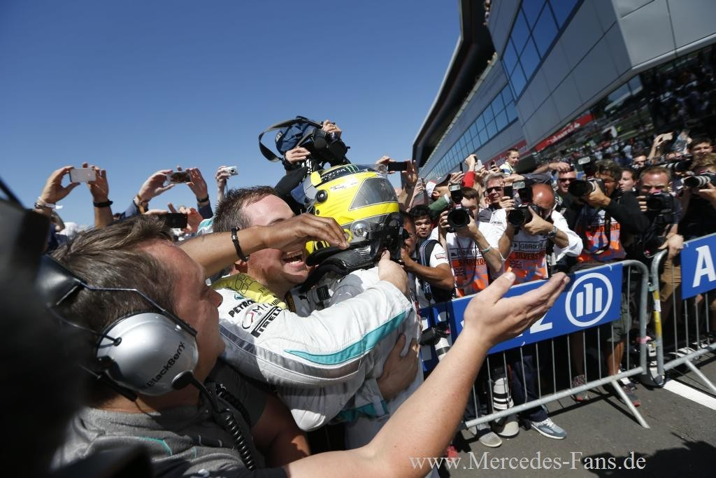 Sieg für die Silberpfeile in Silverstone: Nico Rosberg gewann den Großen Preis von Großbritannien. Es war nach dem Erfolg in Monaco sein zweiter Sieg in der Formel 1-Saison 2013. Lewis Hamilton überquerte die Ziellinie beim Heimrennen von MERCEDES AMG PETRONAS in Silverstone als Vierter. Hamilton verteidigte seine Pole Position mit einem guten Start und konnte sich schnell vom Rest des Feldes absetzen. Rosberg hingegen verlor von Startplatz zwei eine Position.