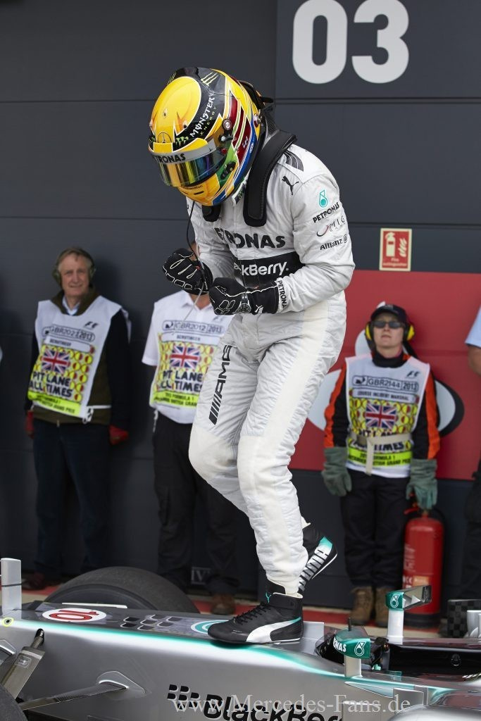 Sieg für die Silberpfeile in Silverstone: Nico Rosberg gewann den Großen Preis von Großbritannien. Es war nach dem Erfolg in Monaco sein zweiter Sieg in der Formel 1-Saison 2013. Lewis Hamilton überquerte die Ziellinie beim Heimrennen von MERCEDES AMG PETRONAS in Silverstone als Vierter. Hamilton verteidigte seine Pole Position mit einem guten Start und konnte sich schnell vom Rest des Feldes absetzen. Rosberg hingegen verlor von Startplatz zwei eine Position.
