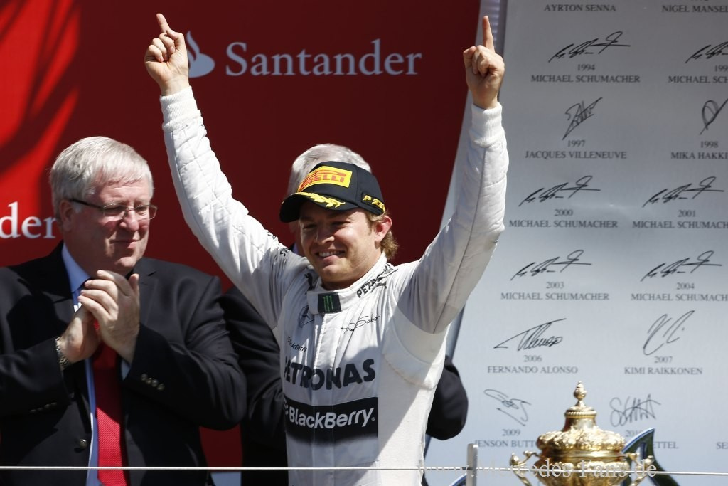 Sieg für die Silberpfeile in Silverstone: Nico Rosberg gewann den Großen Preis von Großbritannien. Es war nach dem Erfolg in Monaco sein zweiter Sieg in der Formel 1-Saison 2013. Lewis Hamilton überquerte die Ziellinie beim Heimrennen von MERCEDES AMG PETRONAS in Silverstone als Vierter. Hamilton verteidigte seine Pole Position mit einem guten Start und konnte sich schnell vom Rest des Feldes absetzen. Rosberg hingegen verlor von Startplatz zwei eine Position.