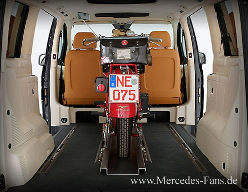 Die Schiene für den sicheren Motorradtransport passt auch für Vito und Viano!