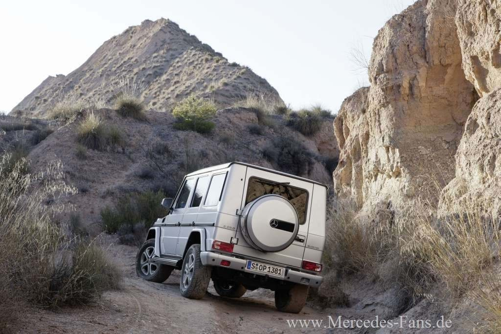 Klassiker im neuen Kleid: Mercedes-Benz präsentiert die Modellpflege der neuen G-Klasse und wertet den Bestseller und Dauerbrenner m SUV-Segment nochmals deutlich auf .Eine hochwertige Ausstattung mit edlen Materialien prägt das Interieur. Die Instrumententafel und die Mittelkonsole wurden komplett neu gestaltet. Zwischen den beiden neuen Rundinstrumenten rückt ein Farbbildschirm in das Blickfeld des Fahrers. Serienmäßig mit an Bord ist das moderne Infotainmentsystem COMAND Online mit Navigation und Internetzugang. Neue LED-Tagfahrleuchten und Außenspiegel verändern den äußeren Look des Luxus-Geländewagens nur dezent. Die Palette der Sicherheitsfeatures ergänzen auf Wunsch ein Totwinkel-Assistent, die Einparkhilfe Parktronic sowie der Abstandsregel-Tempomat DISTRONIC PLUS. Neu im Programm sind der G 63 AMG mit einem Achtzylinder-Biturbomotor und serienmäßiger ECO Start-Stopp Funktion sowie der G 65 AMG mit Zwölfzylinder-Biturbomotor.
