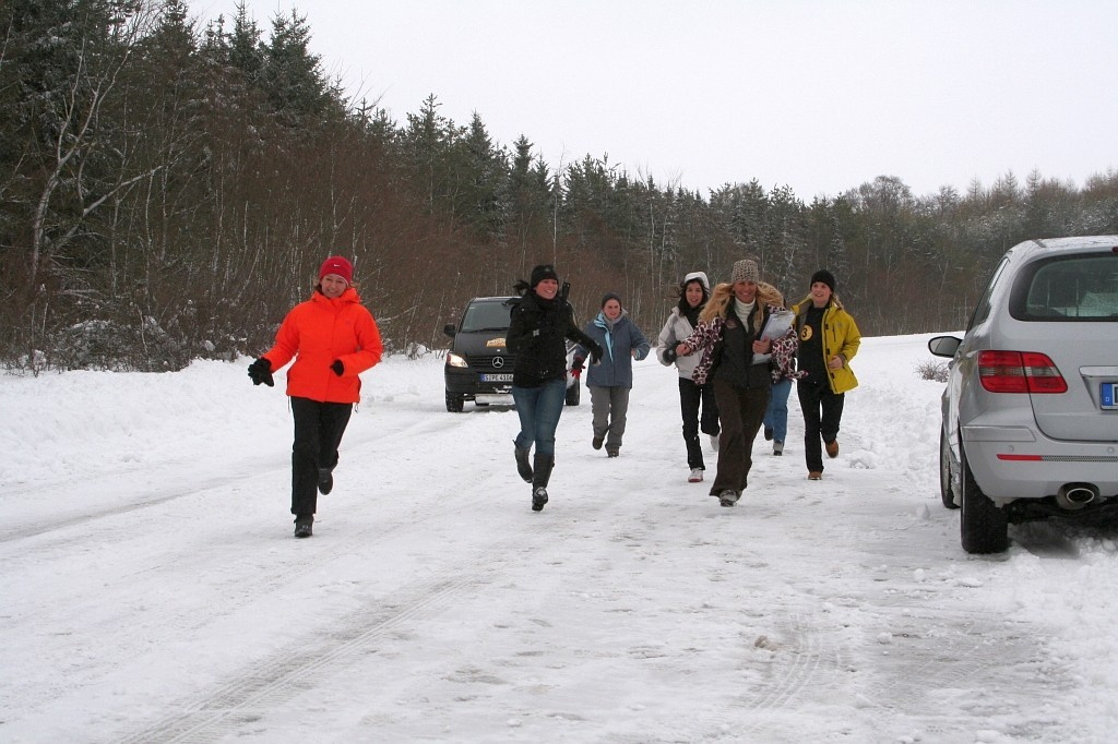 Der Sprinter ist ganz schön in den Schnee gefahren aber den kriegen wir Mädels gemeinsam da raus.