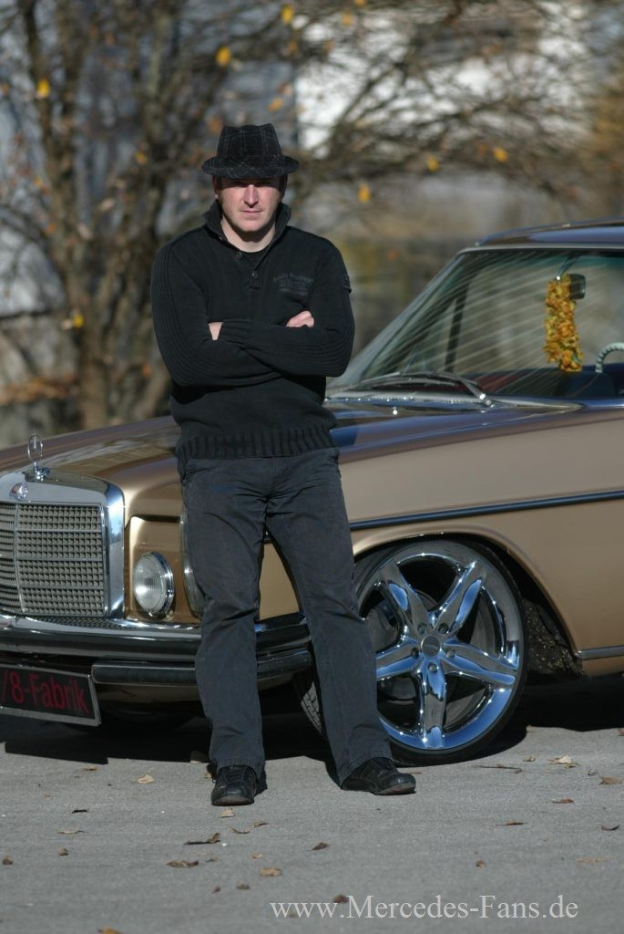 Ach, wie goldig! Obwohl er schon 31 Jahre auf dem hübsch linierten Bechbuckel hat, beeindruckt der Mercedes 250CE als flott gestylter Strahlemann. Zudem Christian Pichler seinem W114 in Gestalt der imposanten Chromfelgen noch mehr Glanz und Gloria gönnte. Ansonsten halten sich die Modifikationen in überschaubaren Grenzen. Einfach nur ein schöner Stern! Und damit goldrichtig für das "Auto der Woche!"