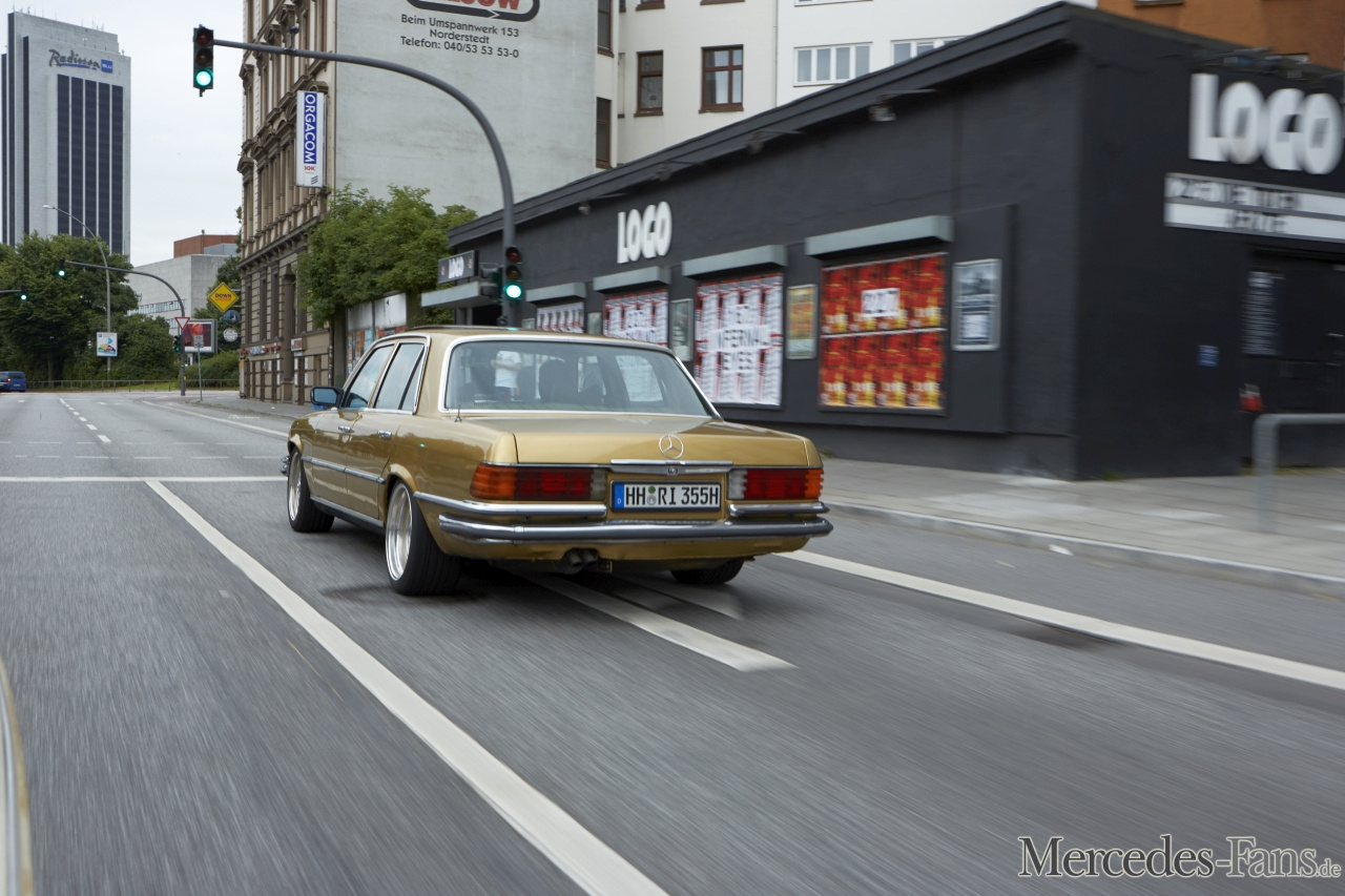 City-Cruising mit goldenem Stern: im W116 unterwegs in Hamburg