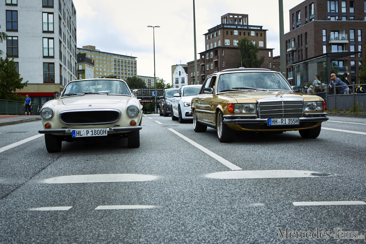 City-Cruising mit goldenem Stern: im W116 unterwegs in Hamburg