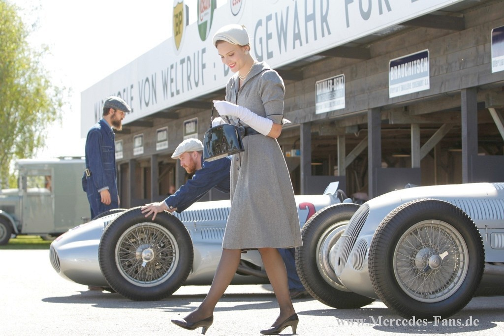 Das Goodwood Revival stand in diesem Jahr ganz und gar unter dem Motto Silberpfeile. Deshalb schickte Mercedes-Benz Classic vier originale Vorkriegs-Silberpfeile auf die Rennstrecke. Die von den Mercedes-Piloten Roland Asch, Jochen Mass, Bernd Schneider, Jackie und Paul Stewart gelenkten historischen Rennfahrzeuge sind echte Originale aus den 1930er Jahren! Auf dem Goodwood Motor Circuit werden in diesem Jahr ein W 25 (1934), ein W 125 (1937), ein W 154 (1939) sowie ein W 165 (1939) ihre Acht- und Zwölfzylindermotoren erklingen lassen. Den vier fahrenden Silberpfeilen stellt Mercedes-Benz Classic einen Renntransporter vom Typ Lo 2750 (1936) zur Seite, wie er seinerzeit zum Transport der ersten Silberpfeile verwendet wurde.