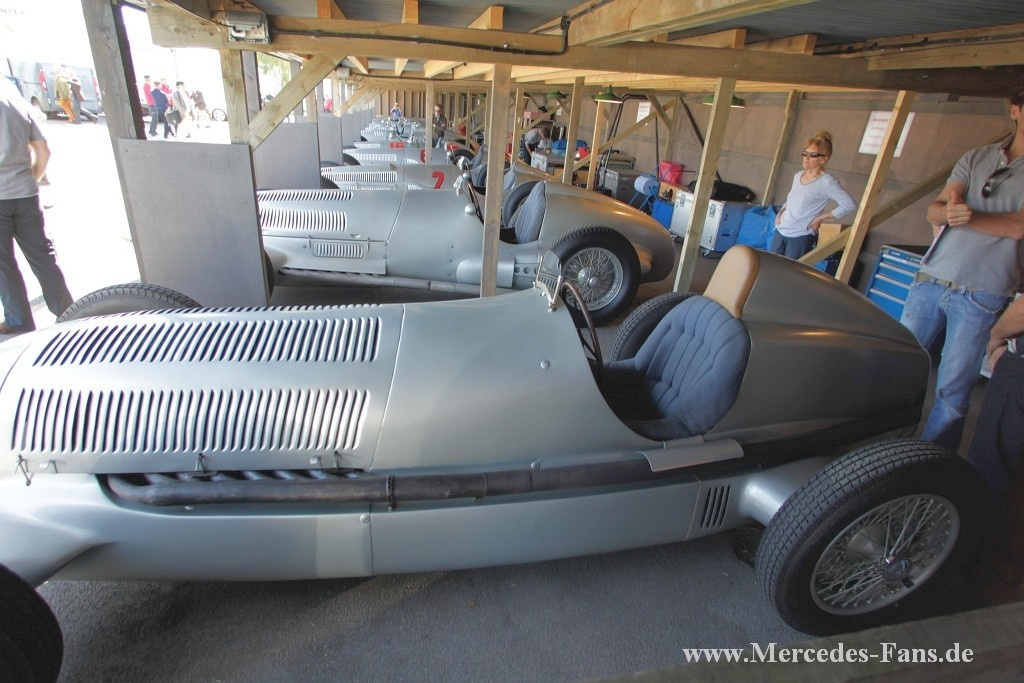 Das Goodwood Revival stand in diesem Jahr ganz und gar unter dem Motto Silberpfeile. Deshalb schickte Mercedes-Benz Classic vier originale Vorkriegs-Silberpfeile auf die Rennstrecke. Die von den Mercedes-Piloten Roland Asch, Jochen Mass, Bernd Schneider, Jackie und Paul Stewart gelenkten historischen Rennfahrzeuge sind echte Originale aus den 1930er Jahren! Auf dem Goodwood Motor Circuit werden in diesem Jahr ein W 25 (1934), ein W 125 (1937), ein W 154 (1939) sowie ein W 165 (1939) ihre Acht- und Zwölfzylindermotoren erklingen lassen. Den vier fahrenden Silberpfeilen stellt Mercedes-Benz Classic einen Renntransporter vom Typ Lo 2750 (1936) zur Seite, wie er seinerzeit zum Transport der ersten Silberpfeile verwendet wurde.