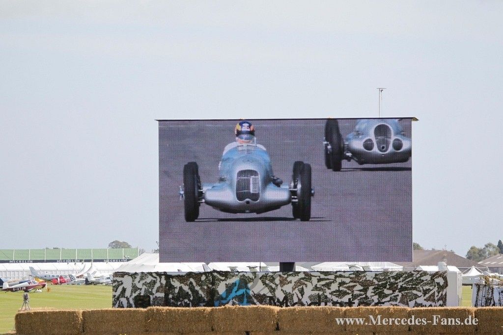 Das Goodwood Revival stand in diesem Jahr ganz und gar unter dem Motto Silberpfeile. Deshalb schickte Mercedes-Benz Classic vier originale Vorkriegs-Silberpfeile auf die Rennstrecke. Die von den Mercedes-Piloten Roland Asch, Jochen Mass, Bernd Schneider, Jackie und Paul Stewart gelenkten historischen Rennfahrzeuge sind echte Originale aus den 1930er Jahren! Auf dem Goodwood Motor Circuit werden in diesem Jahr ein W 25 (1934), ein W 125 (1937), ein W 154 (1939) sowie ein W 165 (1939) ihre Acht- und Zwölfzylindermotoren erklingen lassen. Den vier fahrenden Silberpfeilen stellt Mercedes-Benz Classic einen Renntransporter vom Typ Lo 2750 (1936) zur Seite, wie er seinerzeit zum Transport der ersten Silberpfeile verwendet wurde.