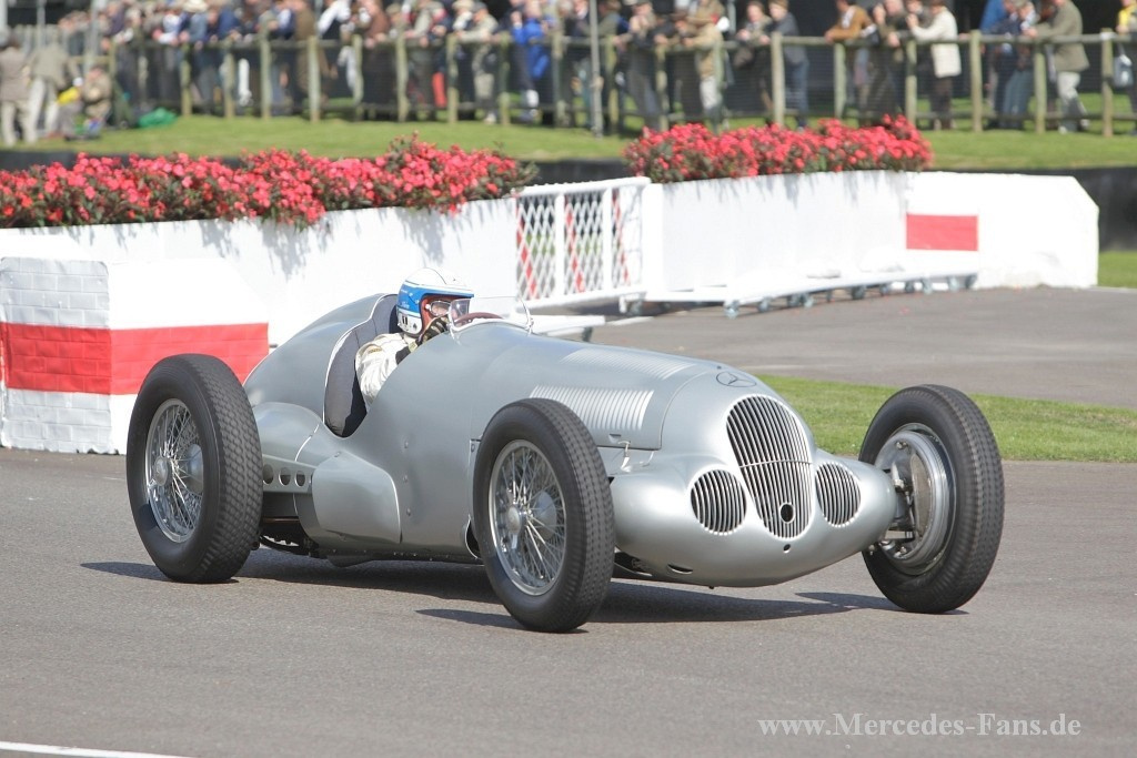 Das Goodwood Revival stand in diesem Jahr ganz und gar unter dem Motto Silberpfeile. Deshalb schickte Mercedes-Benz Classic vier originale Vorkriegs-Silberpfeile auf die Rennstrecke. Die von den Mercedes-Piloten Roland Asch, Jochen Mass, Bernd Schneider, Jackie und Paul Stewart gelenkten historischen Rennfahrzeuge sind echte Originale aus den 1930er Jahren! Auf dem Goodwood Motor Circuit werden in diesem Jahr ein W 25 (1934), ein W 125 (1937), ein W 154 (1939) sowie ein W 165 (1939) ihre Acht- und Zwölfzylindermotoren erklingen lassen. Den vier fahrenden Silberpfeilen stellt Mercedes-Benz Classic einen Renntransporter vom Typ Lo 2750 (1936) zur Seite, wie er seinerzeit zum Transport der ersten Silberpfeile verwendet wurde.