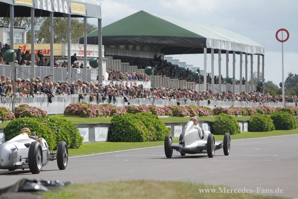 Das Goodwood Revival stand in diesem Jahr ganz und gar unter dem Motto Silberpfeile. Deshalb schickte Mercedes-Benz Classic vier originale Vorkriegs-Silberpfeile auf die Rennstrecke. Die von den Mercedes-Piloten Roland Asch, Jochen Mass, Bernd Schneider, Jackie und Paul Stewart gelenkten historischen Rennfahrzeuge sind echte Originale aus den 1930er Jahren! Auf dem Goodwood Motor Circuit werden in diesem Jahr ein W 25 (1934), ein W 125 (1937), ein W 154 (1939) sowie ein W 165 (1939) ihre Acht- und Zwölfzylindermotoren erklingen lassen. Den vier fahrenden Silberpfeilen stellt Mercedes-Benz Classic einen Renntransporter vom Typ Lo 2750 (1936) zur Seite, wie er seinerzeit zum Transport der ersten Silberpfeile verwendet wurde.