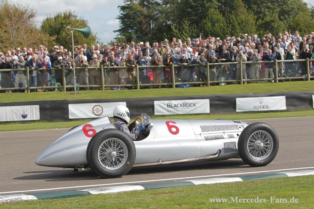 Das Goodwood Revival stand in diesem Jahr ganz und gar unter dem Motto Silberpfeile. Deshalb schickte Mercedes-Benz Classic vier originale Vorkriegs-Silberpfeile auf die Rennstrecke. Die von den Mercedes-Piloten Roland Asch, Jochen Mass, Bernd Schneider, Jackie und Paul Stewart gelenkten historischen Rennfahrzeuge sind echte Originale aus den 1930er Jahren! Auf dem Goodwood Motor Circuit werden in diesem Jahr ein W 25 (1934), ein W 125 (1937), ein W 154 (1939) sowie ein W 165 (1939) ihre Acht- und Zwölfzylindermotoren erklingen lassen. Den vier fahrenden Silberpfeilen stellt Mercedes-Benz Classic einen Renntransporter vom Typ Lo 2750 (1936) zur Seite, wie er seinerzeit zum Transport der ersten Silberpfeile verwendet wurde.