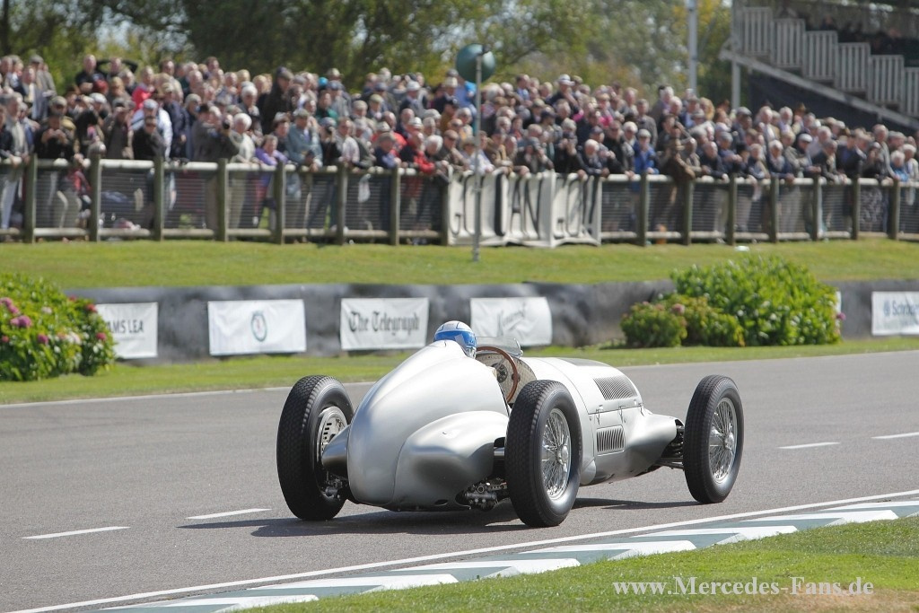 Das Goodwood Revival stand in diesem Jahr ganz und gar unter dem Motto Silberpfeile. Deshalb schickte Mercedes-Benz Classic vier originale Vorkriegs-Silberpfeile auf die Rennstrecke. Die von den Mercedes-Piloten Roland Asch, Jochen Mass, Bernd Schneider, Jackie und Paul Stewart gelenkten historischen Rennfahrzeuge sind echte Originale aus den 1930er Jahren! Auf dem Goodwood Motor Circuit werden in diesem Jahr ein W 25 (1934), ein W 125 (1937), ein W 154 (1939) sowie ein W 165 (1939) ihre Acht- und Zwölfzylindermotoren erklingen lassen. Den vier fahrenden Silberpfeilen stellt Mercedes-Benz Classic einen Renntransporter vom Typ Lo 2750 (1936) zur Seite, wie er seinerzeit zum Transport der ersten Silberpfeile verwendet wurde.