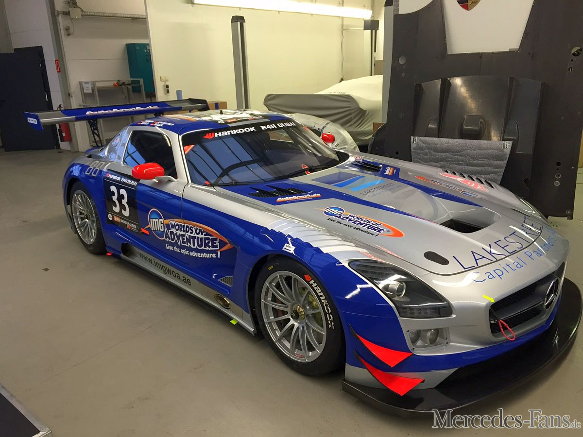 Der Mercedes SLS mit der Startnummer 33 und das Equipment sind bereits auf dem Seeweg an die Rennstrecke unterwegs.