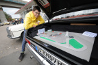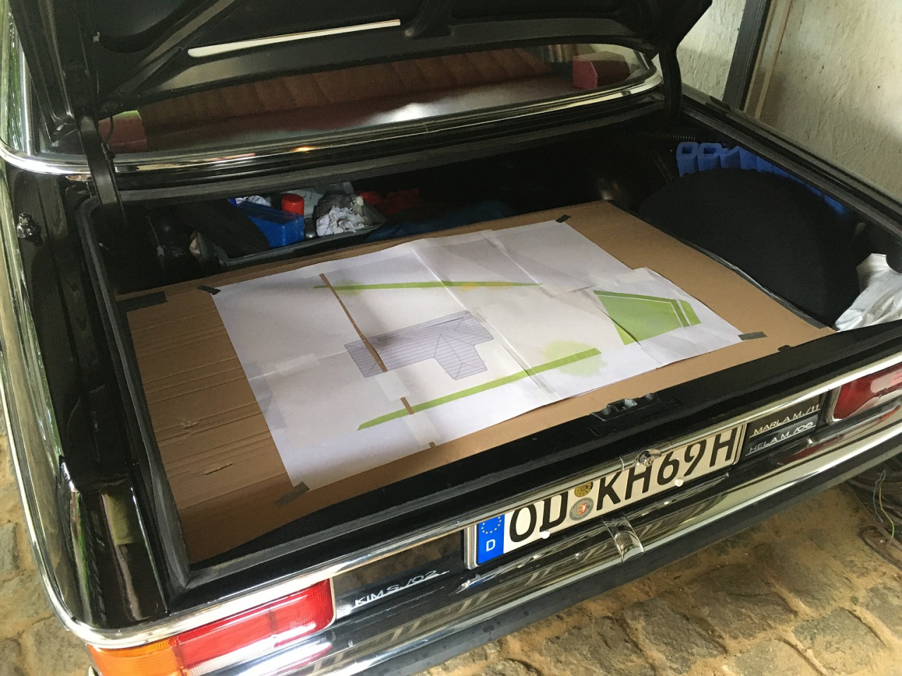 Im Kofferraum seines schwarzen 250/8 von 1969