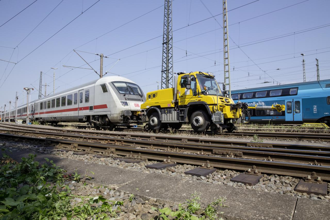 Unimog präsentiert sich für den Einsatz auf Straße und Schiene