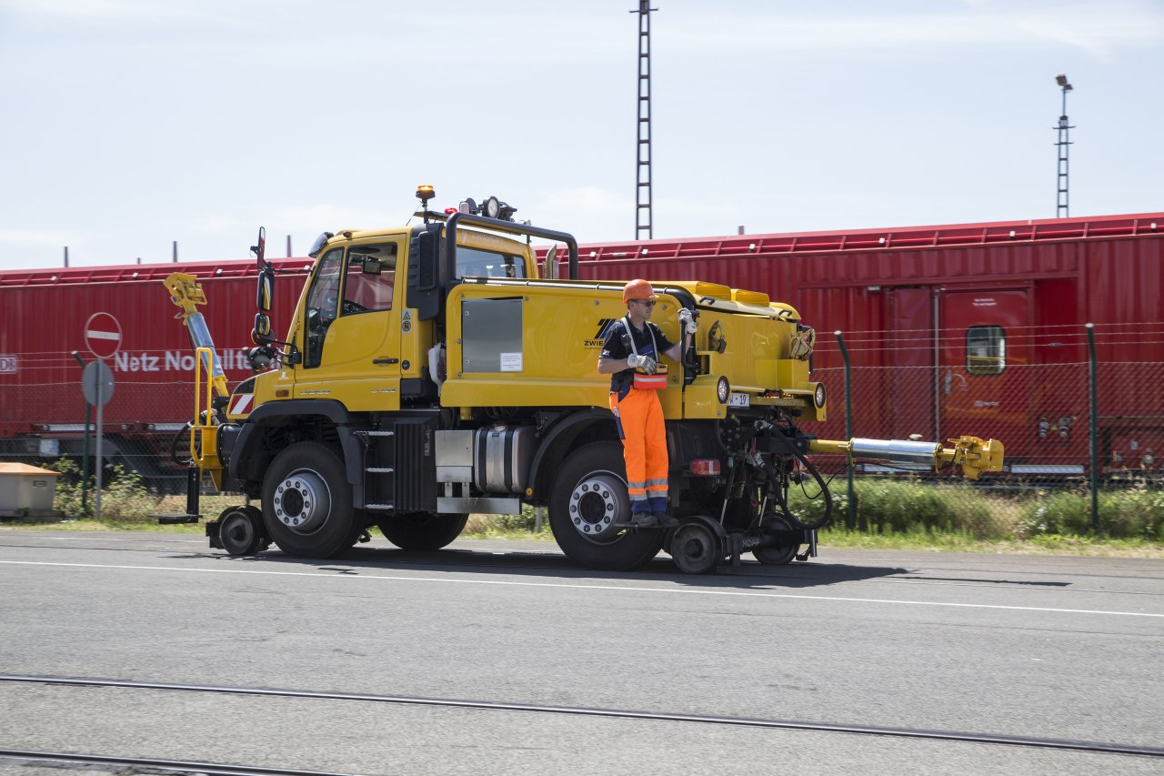 Unimog präsentiert sich für den Einsatz auf Straße und Schiene