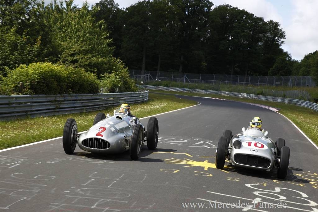 Junge Fahrer - alte Silberfpeile: Rosberg und Hamilton in historischen Silberpfeilen auf Nordschleife