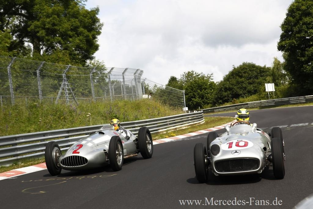 Junge Fahrer - alte Silberfpeile: Rosberg und Hamilton in historischen Silberpfeilen auf Nordschleife