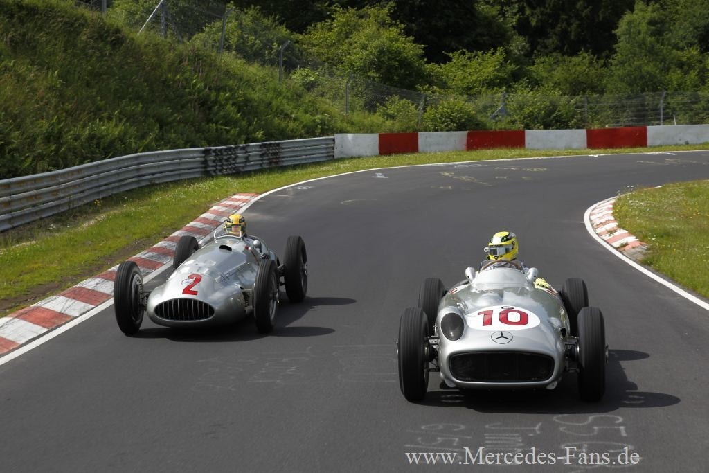 Junge Fahrer - alte Silberfpeile: Rosberg und Hamilton in historischen Silberpfeilen auf Nordschleife