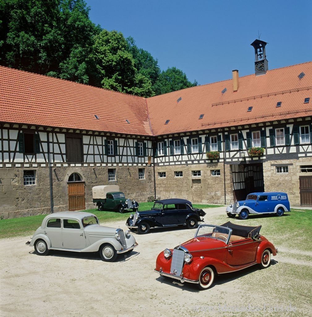 Nach dem Zweiten Weltkrieg beginnt die Pkw-Produktion mit dem Erfolgstyp Mercedes 170 V - zunächst als Krankenwagen, Polizei-Streifenwagen und Lieferwagen. Im Juli 1947 läuft auch die Ausführung als Limousine wieder an. Parallel werden völlig neue Fahrzeuge konzipiert, darunter recht ungewöhnliche Kreationen. Ein besonders kleines Automobil, zumindest für die Verhältnisse von Daimler-Benz, entsteht 1948. Es ist ein kompakter Wagen mit einer Gesamtlänge von 3,70 Metern. Er hat zwei Türen, vorn eine Sitzbank für bis zu drei Personen und hinten eine weitere kleine Sitzbank für den Nachwuchs.