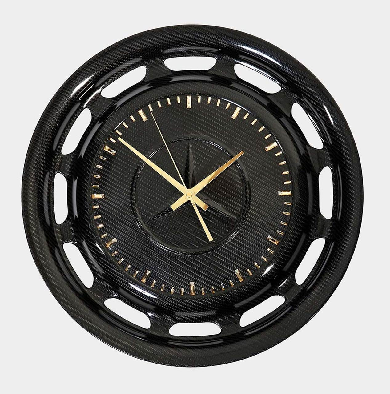 Echt-Carbon Wanduhren im Design der Mercedes-Benz Radkappen der 50er bis 70er Jahre