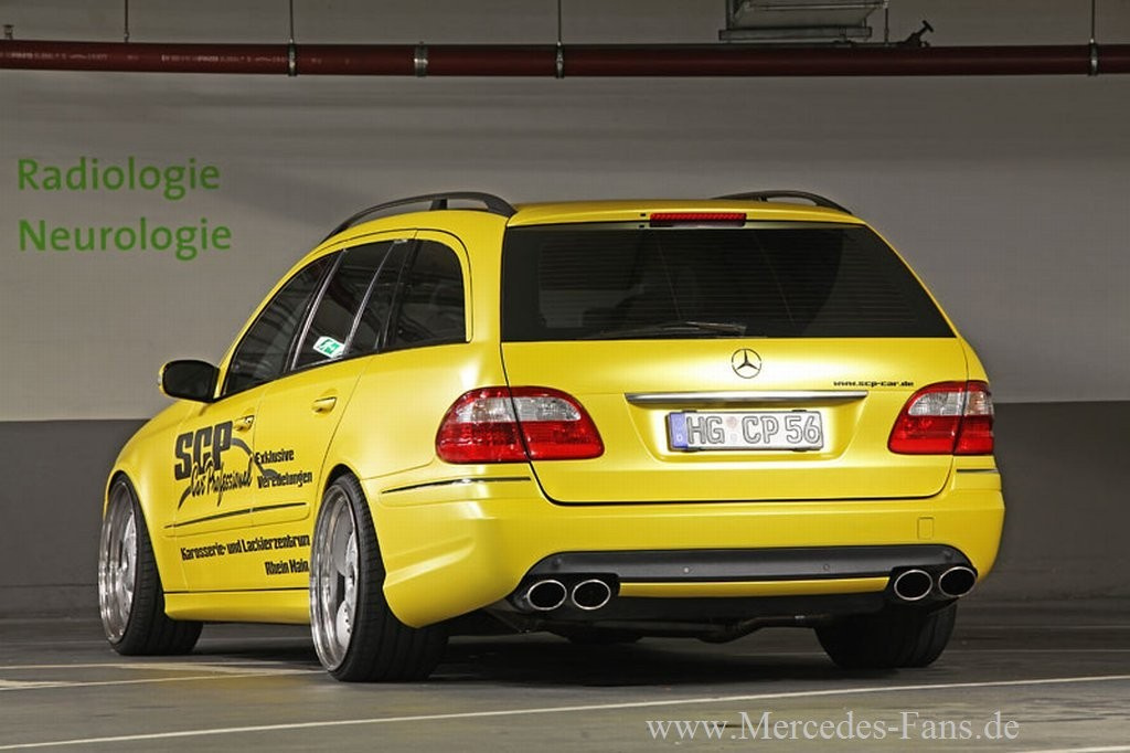 m AMG Style baute die Tuning-Firma SCP (Schulz Car Professional) das T-Modell um. Geweitete Radläufe, eine neue Vierrohr-Abgasanlage (ohne Mittelschalldämpfer), düster getönte Scheiben und eine AMG-Stoßstange gehören zu den markanten äußerlichen Extras. Für die Bodenhaftung sind gekürzten Bilstein B8-Sportstoßdämpfer und nachgepressten KAW-Federn an der Voderachse verwendet worden. An der Hinterachse sind...
