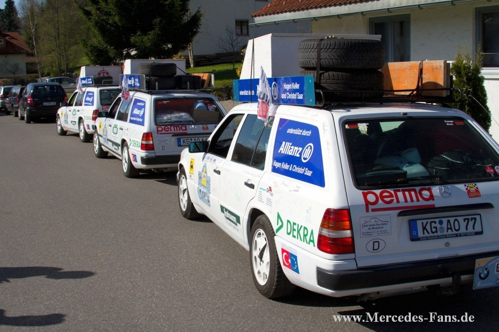 Das Mercedes-Benz Gebrauchtteile Center auf 6000 km Rallye - Rüstig statt rostig: Betagte E-Klassen nehmen an der urigen "Rallye Allgäu Orient" teil Über 6.000km bei der "Allgäu-Orient-Rallye" mit 20 Jahre alten Mercedes - deren Wert unter 1.000 EUR lieg