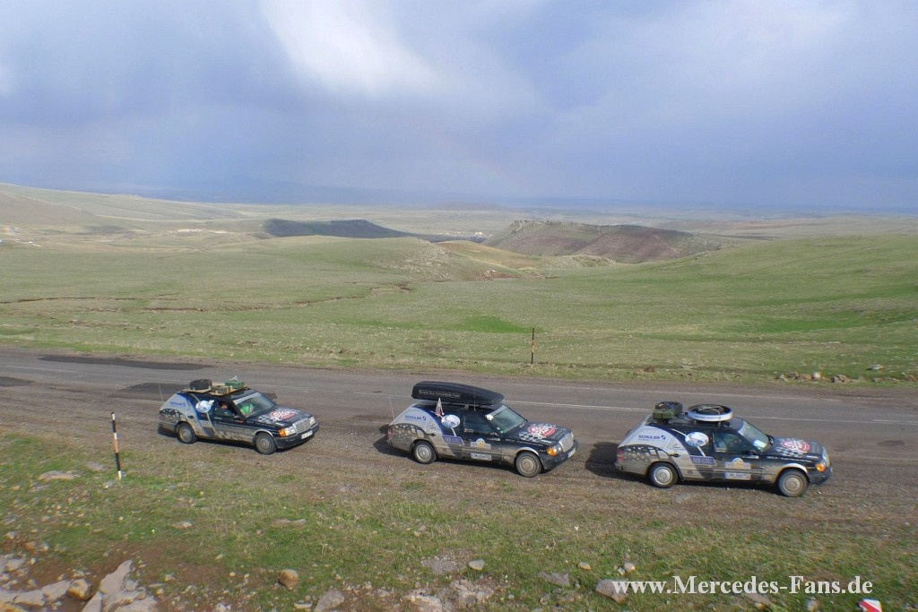 Das Mercedes-Benz Gebrauchtteile Center auf 6000 km Rallye - Rüstig statt rostig: Betagte E-Klassen nehmen an der urigen "Rallye Allgäu Orient" teil Über 6.000km bei der "Allgäu-Orient-Rallye" mit 20 Jahre alten Mercedes - deren Wert unter 1.000 EUR lieg