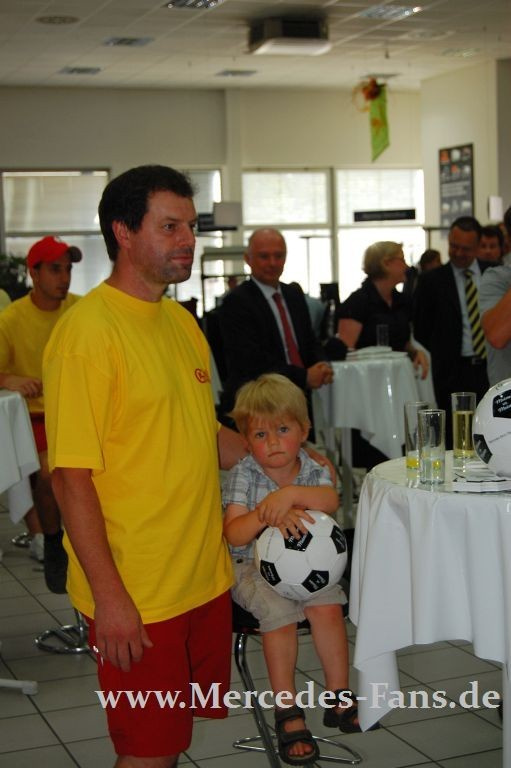 Eine schönere Aktion rund um das Thema Nutzfahrzeuge - und noch dazu im Jahr der WM - konnte man sich gar nicht einfallen lassen. Die Aktion "Meister vs. Meister" meint Weltmeister gegen Handwerksmeister und mobilisierte Zigtausende, die nicht nur einmal gegen ihre Idole antreten wollten, sondern auch einen Mercedes Vito gewinnen konnten. Ein Velberter Handwerksbetrieb zog sich gegen Sepp Maier und Co. am besten aus der Affäre. Im LUEG Nutzfahrzeug-Center Bochum-Wattenscheid durfte Jörg Motzkau seinen Vito in Empfang nehmen!