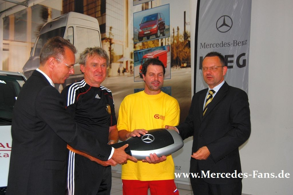 Eine schönere Aktion rund um das Thema Nutzfahrzeuge - und noch dazu im Jahr der WM - konnte man sich gar nicht einfallen lassen. Die Aktion "Meister vs. Meister" meint Weltmeister gegen Handwerksmeister und mobilisierte Zigtausende, die nicht nur einmal gegen ihre Idole antreten wollten, sondern auch einen Mercedes Vito gewinnen konnten. Ein Velberter Handwerksbetrieb zog sich gegen Sepp Maier und Co. am besten aus der Affäre. Im LUEG Nutzfahrzeug-Center Bochum-Wattenscheid durfte Jörg Motzkau seinen Vito in Empfang nehmen!