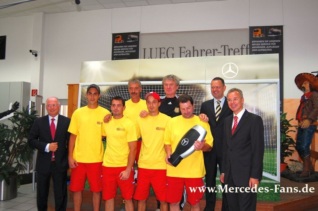 Eine schönere Aktion rund um das Thema Nutzfahrzeuge - und noch dazu im Jahr der WM - konnte man sich gar nicht einfallen lassen. Die Aktion "Meister vs. Meister" meint Weltmeister gegen Handwerksmeister und mobilisierte Zigtausende, die nicht nur einmal gegen ihre Idole antreten wollten, sondern auch einen Mercedes Vito gewinnen konnten. Ein Velberter Handwerksbetrieb zog sich gegen Sepp Maier und Co. am besten aus der Affäre. Im LUEG Nutzfahrzeug-Center Bochum-Wattenscheid durfte Jörg Motzkau seinen Vito in Empfang nehmen!