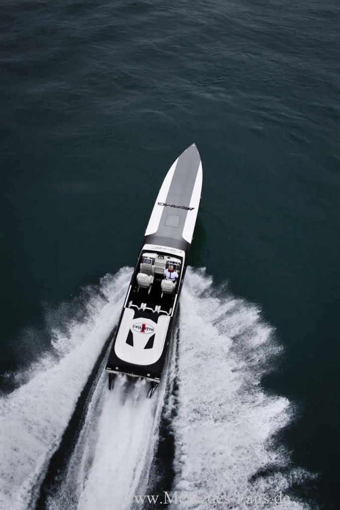 Aus der Kooperation des Auto-Performance-Spezialisten Mercedes AMG und dem Luxus-Speedboat-Bauer "Cigarette Racing" ist schon das ein oder andere Lifestyle-Projekt entstanden. Jüngstes Kind der Partnerschaft ist ein Powerboat mit 2700 PS, das einiges Designelemente vom Mercedes-Benz C 63 AMG Black Series an Bord hat und auf der Miami Boat Show 2011 Premiere feiern wird.