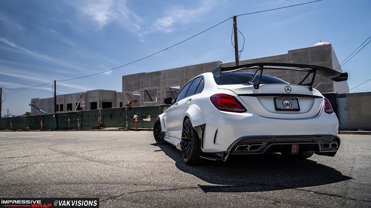 Das perlt schön stark: C63 mit Breitbau-Kit und Folierung in Satin Pearl White