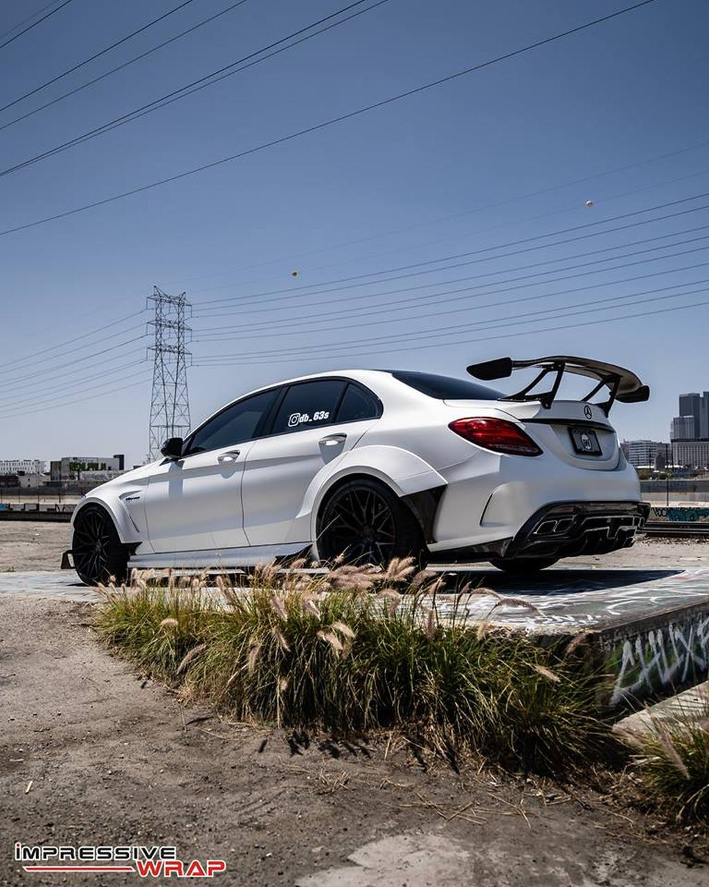 Das perlt schön stark: C63 mit Breitbau-Kit und Folierung in Satin Pearl White