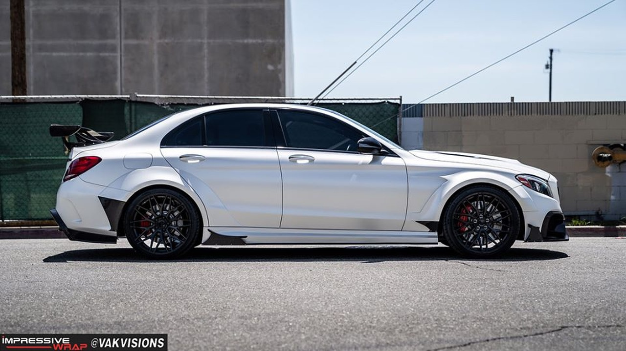 Das perlt schön stark: C63 mit Breitbau-Kit und Folierung in Satin Pearl White