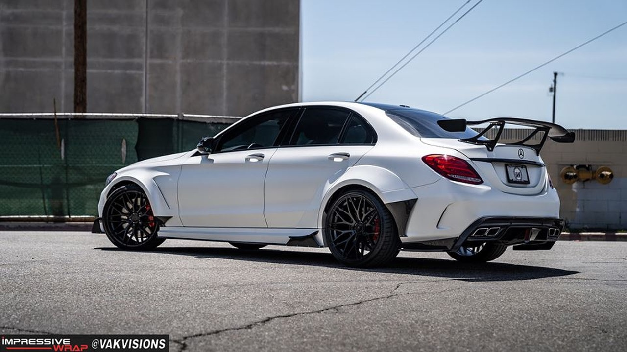 Das perlt schön stark: C63 mit Breitbau-Kit und Folierung in Satin Pearl White
