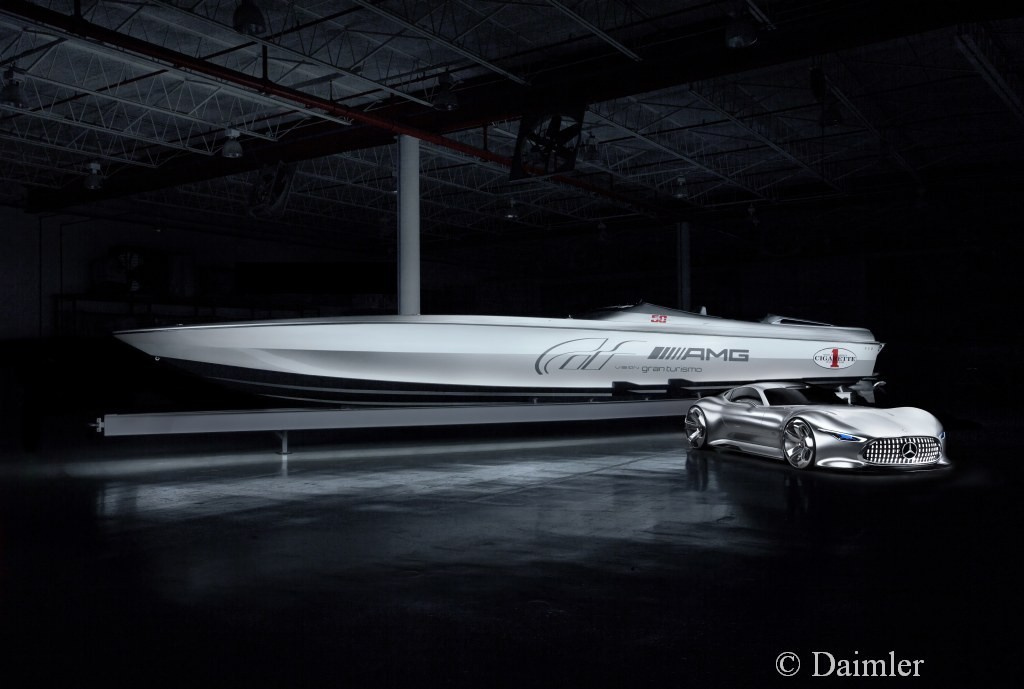 Mercedes-Benz kann im wahren Sinn des Wortes die Welle machen: Cigarette Racing und Mercedes-AMG bündeln ihre Kompetenzen bereits im vierten Jahr in Folge und präsentieren auf der diesjährigen Miami International Boat Show zwei futuristische Visionen: den Mercedes-Benz AMG Vision Gran Turismo und das Cigarette Racing 50' Vision GT Concept.