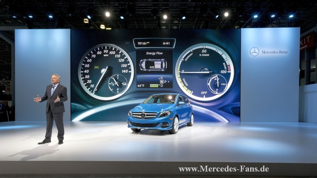 Mit fünf neuen Modellen treibt Mercedes-Benz seine weltweite Produktoffensive auch in den USA mit Nachdruck voran. Zu den spannendsten Neuheiten der New York International Auto Show (NYIAS) zählen die rein batterieelektrisch angetriebene B-Klasse Electric Drive und das High-Performance Coupé CLA 45 AMG, die auf der NYIAS 2013 Weltpremiere feiern. Marktpremiere in den USA haben parallel die Serienversion der neuen CLA-Klasse, die Allrad-getriebene Kombiversion des E 63 AMG S-Modells, der C 63 AMG Edition 507 sowie der smart fortwo electric drive.