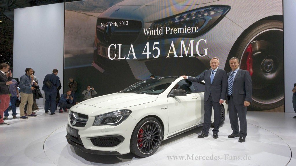 Mit fünf neuen Modellen treibt Mercedes-Benz seine weltweite Produktoffensive auch in den USA mit Nachdruck voran. Zu den spannendsten Neuheiten der New York International Auto Show (NYIAS) zählen die rein batterieelektrisch angetriebene B-Klasse Electric Drive und das High-Performance Coupé CLA 45 AMG, die auf der NYIAS 2013 Weltpremiere feiern. Marktpremiere in den USA haben parallel die Serienversion der neuen CLA-Klasse, die Allrad-getriebene Kombiversion des E 63 AMG S-Modells, der C 63 AMG Edition 507 sowie der smart fortwo electric drive.