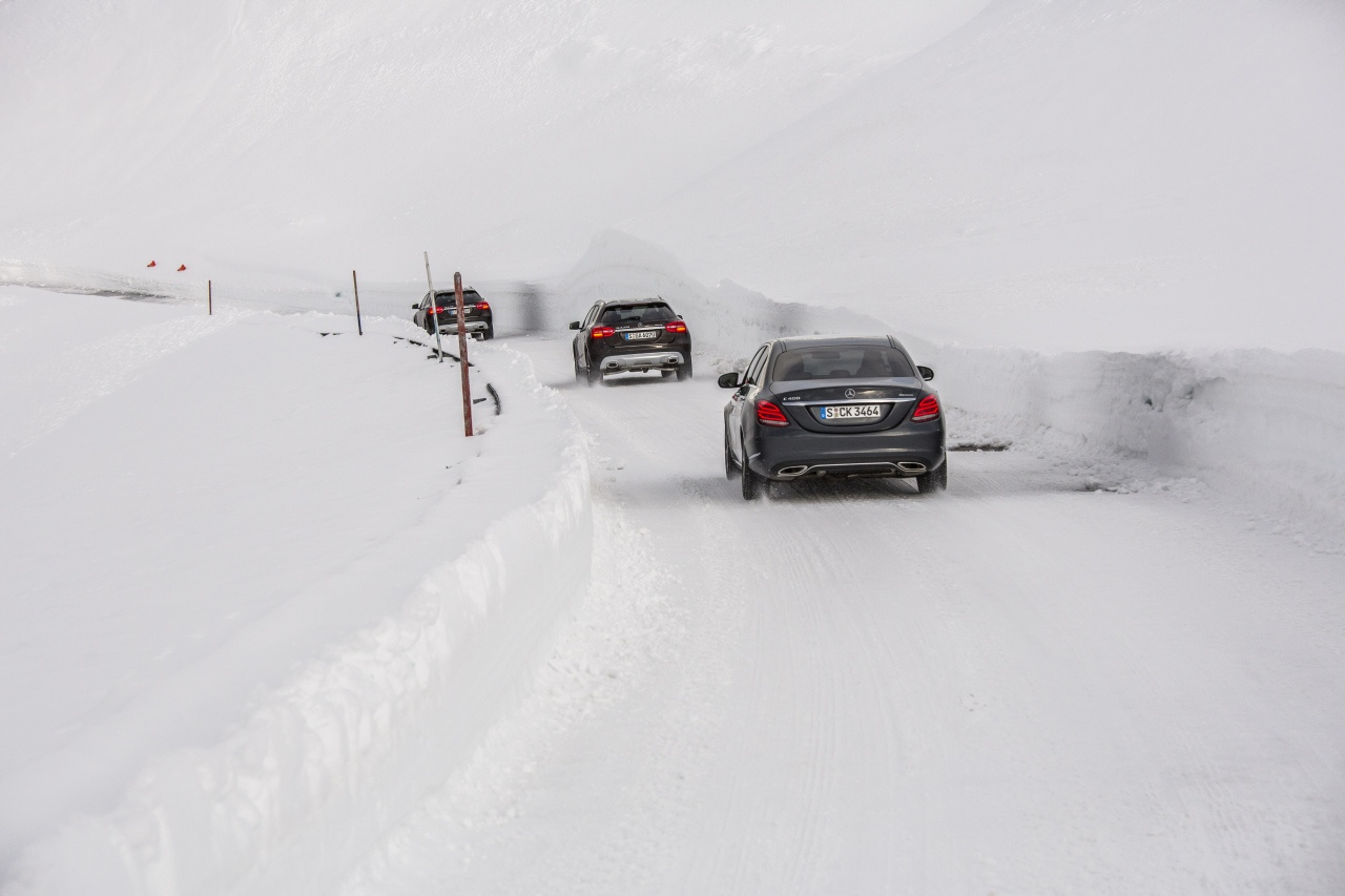 Gipfeltreffen mit 4MATIC-Modellen in den schneebedeckten Bergen