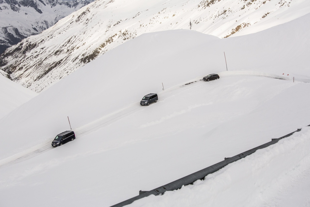 Gipfeltreffen mit 4MATIC-Modellen in den schneebedeckten Bergen