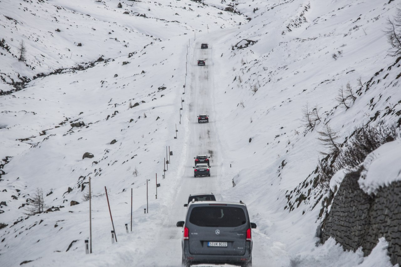 Gipfeltreffen mit 4MATIC-Modellen in den schneebedeckten Bergen