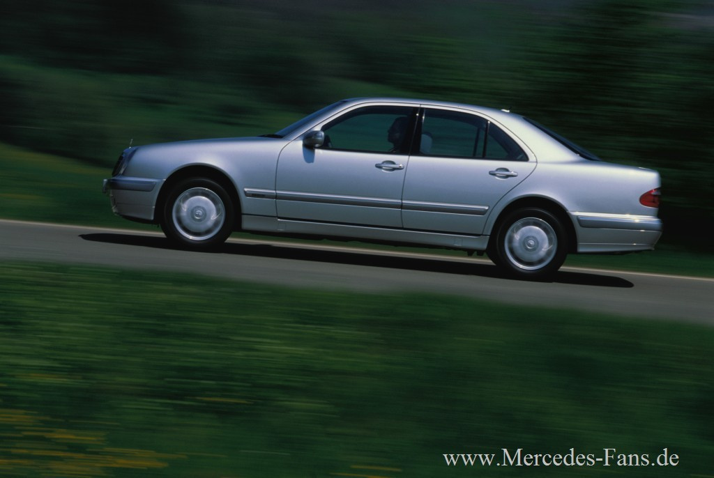 Mercedes-Benz eine markante Frontpartie mit vier elliptischen Scheinwerfern. Für Aufsehen sorgt außerdem die coupéähnliche Heckgestaltung. Beide Designelemente, die sich deutlich von der vergleichsweise strengen Linienführung der Baureihe 124 abheben, werden von Fachleuten und Öffentlichkeit sehr positiv aufgenommen. Prompt wird die Limousine W 210 mit dem renommierten Designpreis red dot design award (Designpreis Roter Punkt) ausgezeichnet. Die neue E-Klasse zeichnet sich jedoch nicht nur durch ihre unverwechselbare Gestalt, sondern durch den Einsatz von mehr als 30 technischen Neuerungen aus. Bemerkenswert ist außerdem der sensationell niedrige Luftwiderstandsbeiwert von cw=0,27.