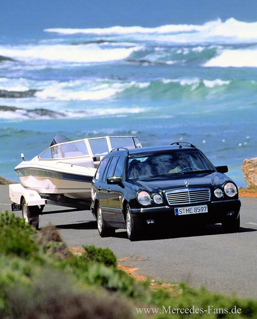 Mercedes-Benz eine markante Frontpartie mit vier elliptischen Scheinwerfern. Für Aufsehen sorgt außerdem die coupéähnliche Heckgestaltung. Beide Designelemente, die sich deutlich von der vergleichsweise strengen Linienführung der Baureihe 124 abheben, werden von Fachleuten und Öffentlichkeit sehr positiv aufgenommen. Prompt wird die Limousine W 210 mit dem renommierten Designpreis red dot design award (Designpreis Roter Punkt) ausgezeichnet. Die neue E-Klasse zeichnet sich jedoch nicht nur durch ihre unverwechselbare Gestalt, sondern durch den Einsatz von mehr als 30 technischen Neuerungen aus. Bemerkenswert ist außerdem der sensationell niedrige Luftwiderstandsbeiwert von cw=0,27.
