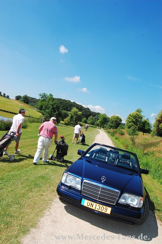 Kaum zu glauben, dass die Baureihe124 im Jahr 2009 ein Vierteljahrhundert alt wurde. Den zeitlosen Linien dieser Mercedes E-Klasse sieht man das Dienstjubiläum wirklich nicht an. Und dennoch ist der kantige Schwabe auf dem besten Wege zum Klassiker. Das gilt ganz sicher auch für das azurit-blaue Cabrio von Ulrich Nelting. Es ist ein rares Modell aus der „Final Edition“- Serie, die Mercedes 1996 und 1997 zum Auslauf der Modellreihe noch vom Band gelassen hat.