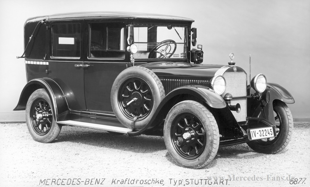 Zehn Jahre nach der Erfindung des Automobils beschließt Daimler, seiner inzwischen recht erfolgreich laufenden Motorkutschen-Herstellung ein breiteres Einsatzgebiet zu geben und empfiehlt seinen Riemenwagen, Modell „N“, als Kraft-Droschke altdeutsch für Taxi.