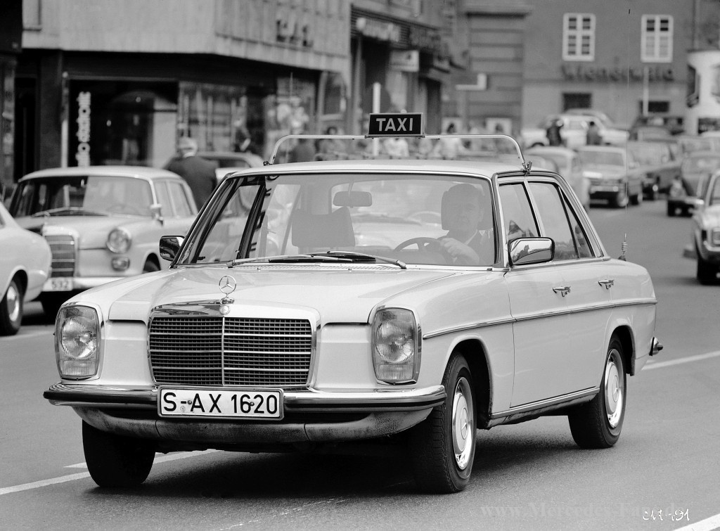Zehn Jahre nach der Erfindung des Automobils beschließt Daimler, seiner inzwischen recht erfolgreich laufenden Motorkutschen-Herstellung ein breiteres Einsatzgebiet zu geben und empfiehlt seinen Riemenwagen, Modell „N“, als Kraft-Droschke altdeutsch für Taxi.