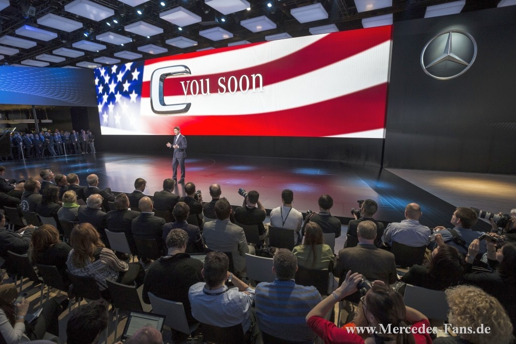 Mercedes-Fans.de ist live und in Farbe auf der Automesse in Detroit. Auf der ersten Automesse des Jahres 2014 startet Mercedes-Benz startet gleich mit drei Weltpremieren durch: Die neue Mercedes C-Klasse der Baureihe 2015 wird wie der Kompakt-SUV GLA 45 AMG und der neue S 600 mit V12-Triebwerk werden dort erstmals präsentiert